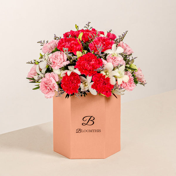Impress your loved ones with stunning carnation flower arrangements. Pick from carnation bouquets or carnation flower boxes. Order by 4 PM for FREE same-day delivery in KL, Selangor, Kedah, Penang, N. Sembilan & JB.