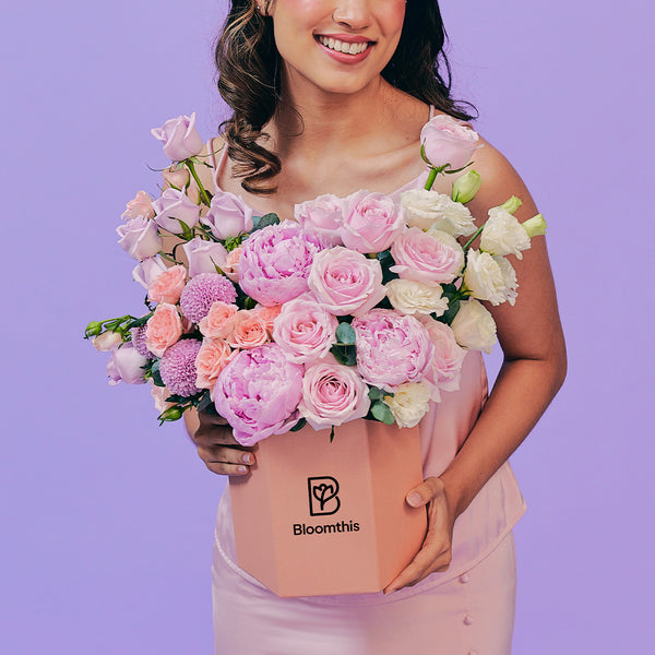 Impress your darling with exquisite peony flowers in gorgeous flower boxes & wraps. Handcrafted with premium blooms by floral artisans. Free same-day peony delivery in KL & Selangor.