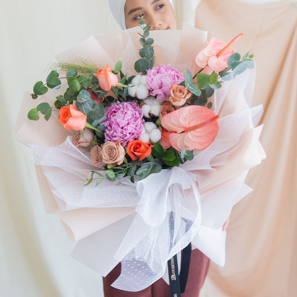 Impress your darling with exquisite peony flowers in gorgeous flower boxes & wraps. Handcrafted with premium blooms by floral artisans. Free same-day peony delivery in KL & Selangor.